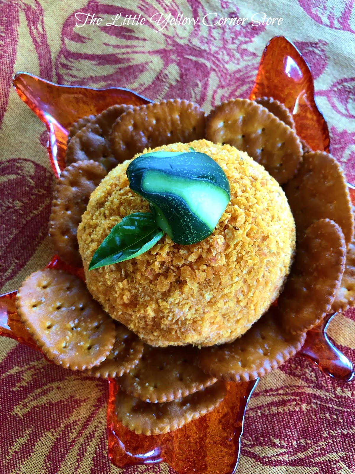 DeleteThe green stem of the cheese ball is a cucumber end cut and slightly peeled for a two color look.