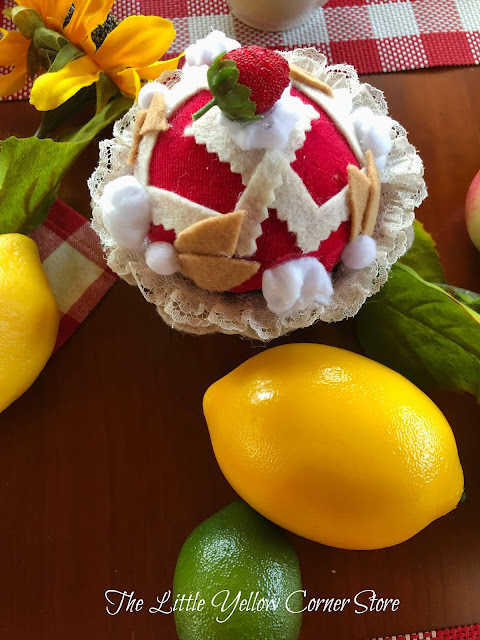 Of course, I think these cutie pies make such adorable Christmas ornaments. They are charming and playful and offer many options to decorate the tree into a theme, like an entire tree made up of baked goods and kitchen items such as mini rolling pins, cookie cutters, kitchen utensils, etc. Or perhaps a fruit themed tree would be perfect with these assorted cutie pies.